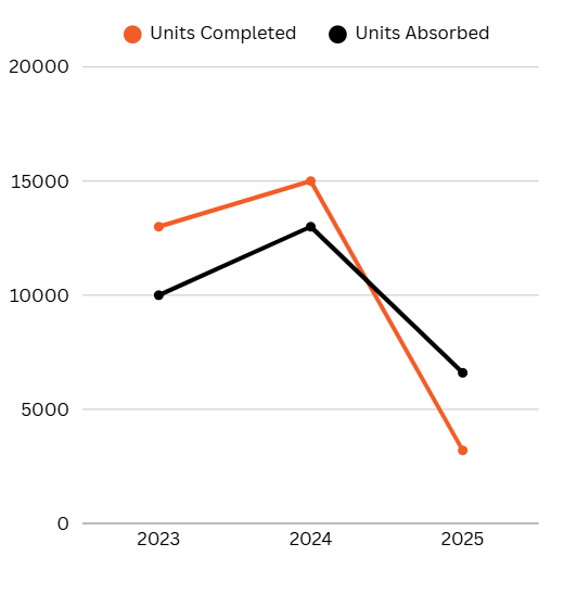 Atlanta absorbed more than 6,600 units in Q2 2025, nearly double completions that quarter. The pipeline has dropped to its lowest in years, signaling that strong demand is finally catching up as new supply eases.